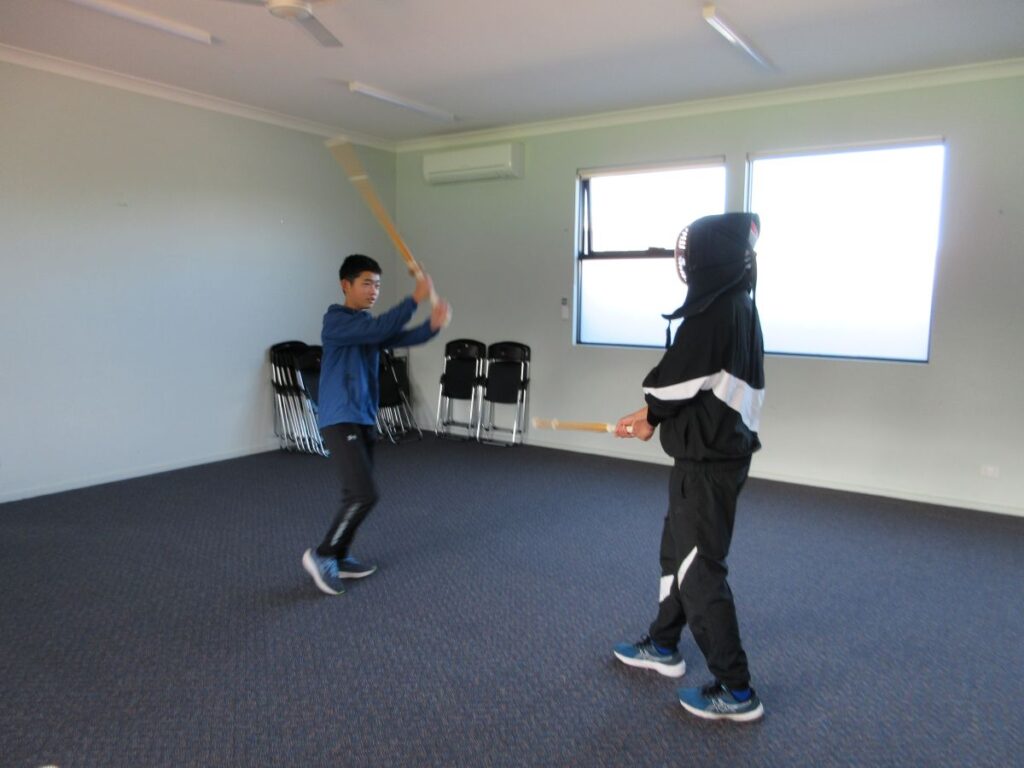 中学部 体育で剣道をしています 2025年9月2日 principal 中学部の体育の時間に剣道を学習しています。文科省学習指導要領において、中学校保健体育科の「武道」領域の中の一つとして「剣道」があります。オーストラリアで日本の武道を学習するのは、用具の関係上なかなか難しいのですが、学校に5本ある竹刀と体育教員自前の面を使い、今日は竹刀の持ち方、構え方、相対し方、竹刀の振り方などを学んだ後、実際に「め~~ん!」と打ち込みの練習もしました。メル校剣士たちの誕生です。