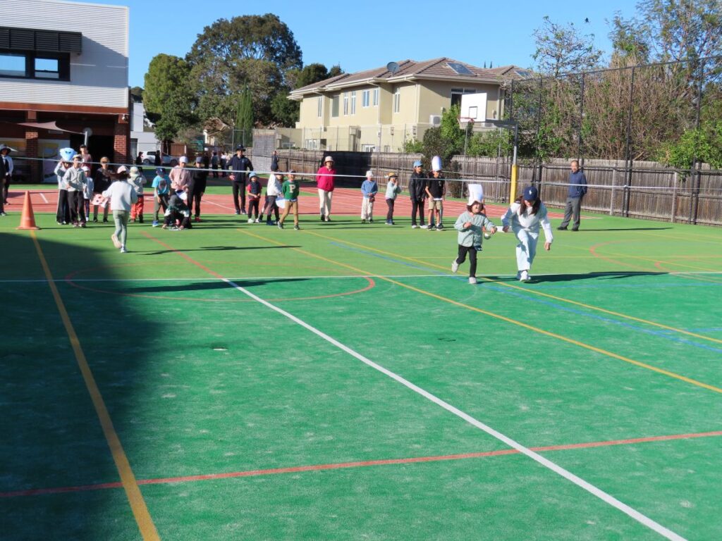 10月31日のハロウィンにはまだ少しあるのですが、今朝はG2が企画した小学部「なんちゃってハロウィン集会」が開かれました。4つの縦割りグループに分かれて、G2手作りのハロウィンのお面をかぶり、おたまにピンポン玉を乗せて運ぶレースです。途中にはくぐらなければならないゲートがあるので、お面がぶつからないように慎重かつスピーディに走らなくてはなりません。どのグループも応援し合いながら、楽しく遊ぶことができました。どんなことでも、みんなで助け合って励まし合えるのがメル校生のいいところです。G2のみんな、楽しい企画をありがとう!