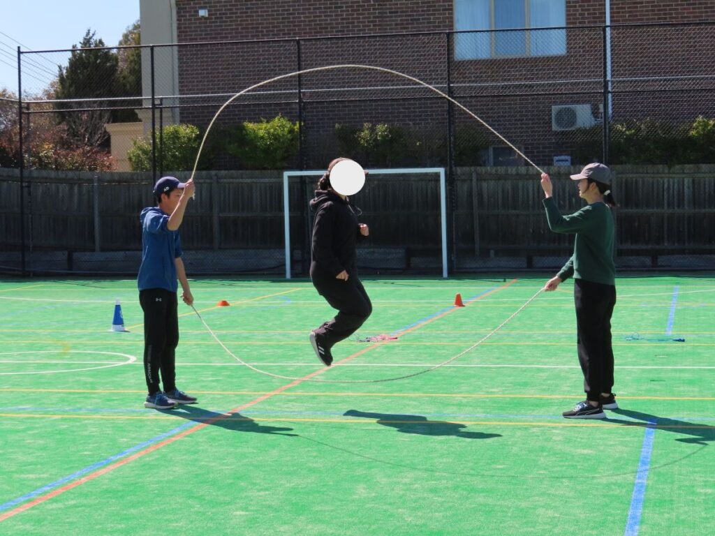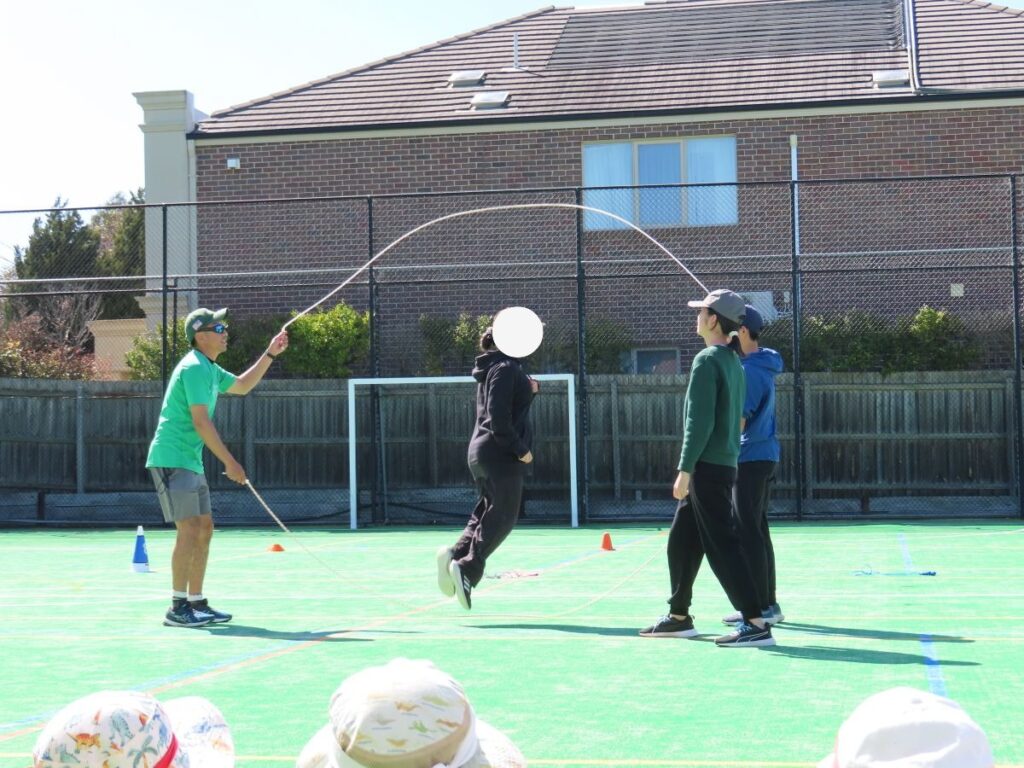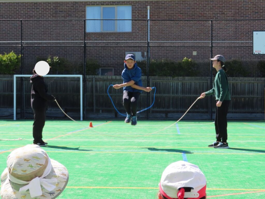 中学部はダブルダッチと創作ダンス。小学部のみんなが見守る中で、堂々の演技を披露し、「かっこいい!」という声が沸き上がりました。憧れのお兄さんお姉さんです。