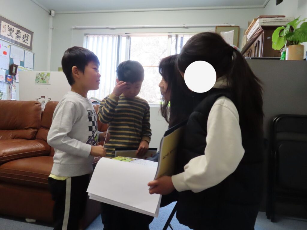 G1は国語の「じどう車くらべ」で『じどう車ずかん』を作り、自分の選んだ自動車の仕事とつくりを校長室で詳しく説明してくれました。