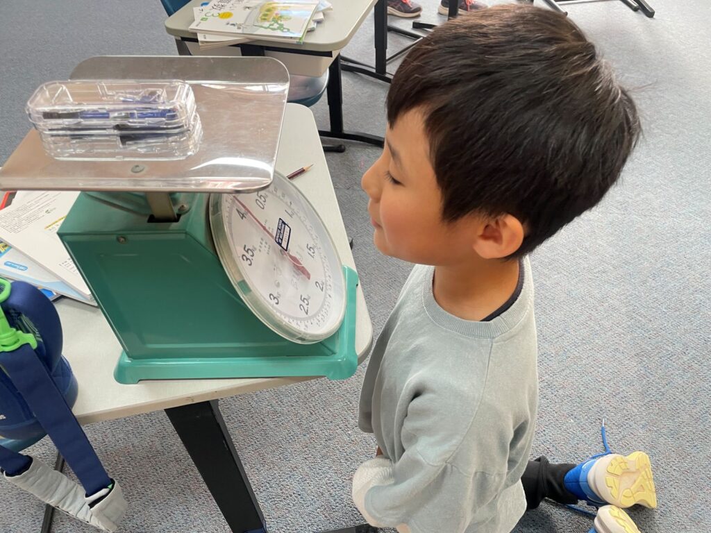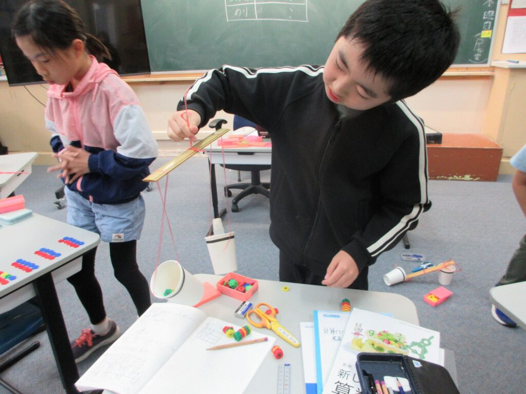G3は算数で、いろいろな重さを測る学習をしていました。