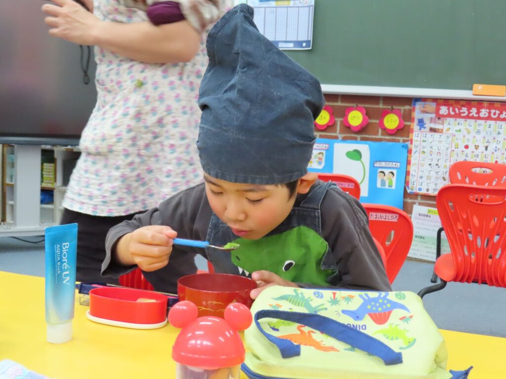 出来上がったおみそ汁はランチタイムにいただきました。おかわり続出で、あっという間にお鍋は空っぽになりました。自分で作ったものはおいしいですよね。またお家でも家族に作ってあげてください。