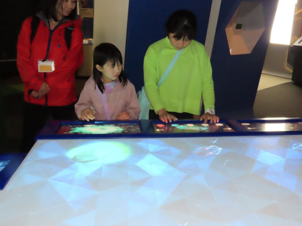 ようやくサイエンスワークスに着くと、たくさんの学校子供たちが来ていました。中の展示はワクワクするものがたくさんありました。G4のみんなはこんなことを学びました。↓