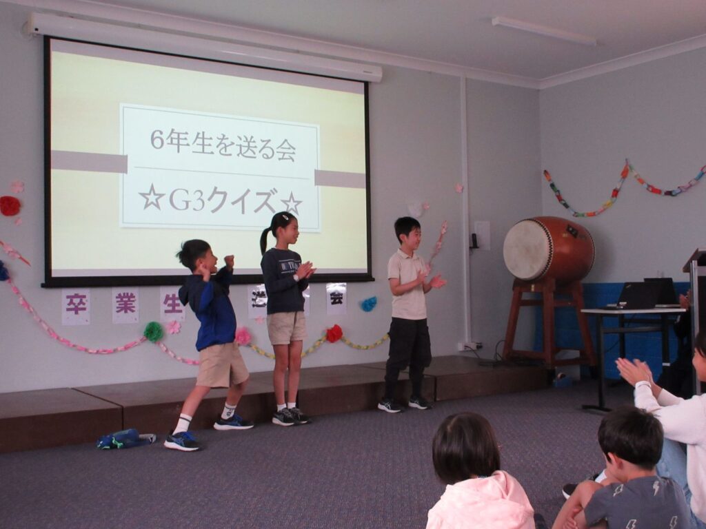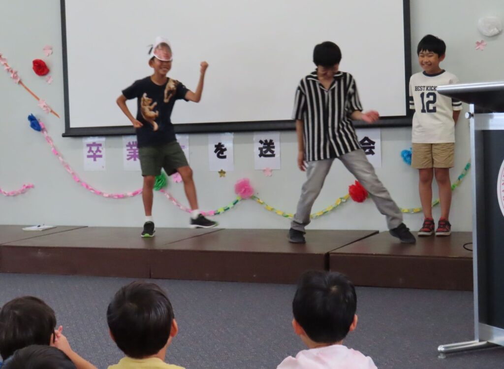 3月6日の卒業式を間近に控え、小学部ではG6を送る会が開かれました。G5が中心になり、お世話になったG6に感謝とお祝いの気持ちを伝えようと、それぞれの学年が一生懸命練習し、工夫を凝らした出し物を披露しました。