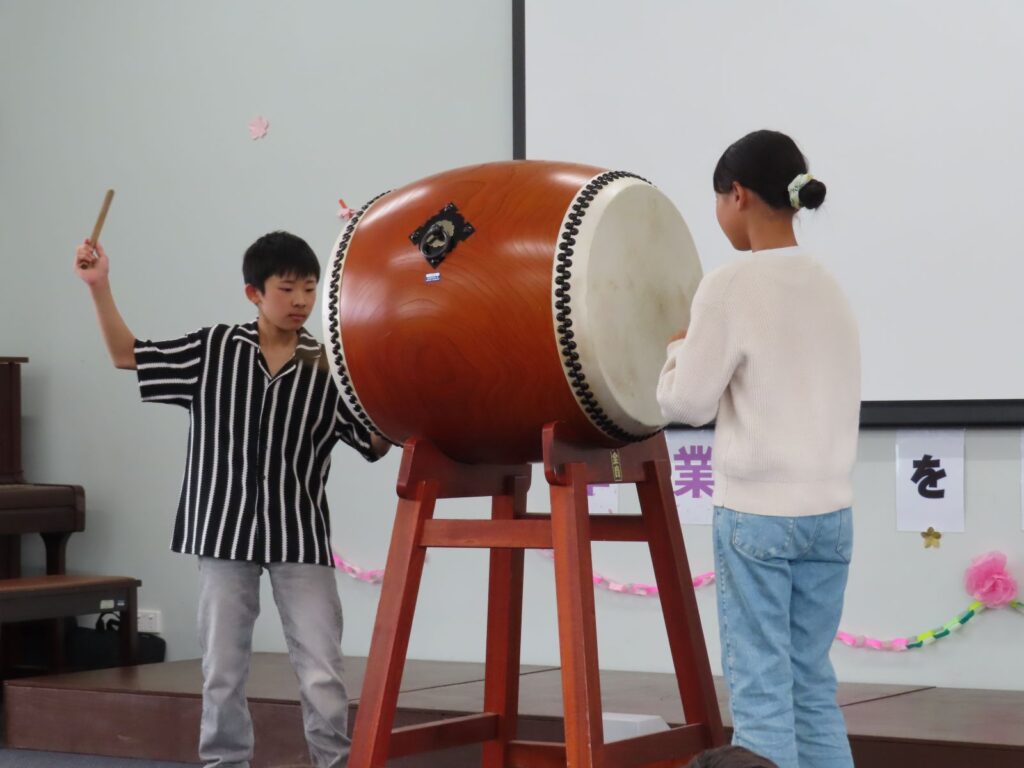最後はG6の和太鼓の演奏です。朝の時間を活用して、ずっと取り組んできた小笠原太鼓です。堂々とした素晴らしい演奏に大きな拍手が沸き上がりました。さすがは最高学年でした!