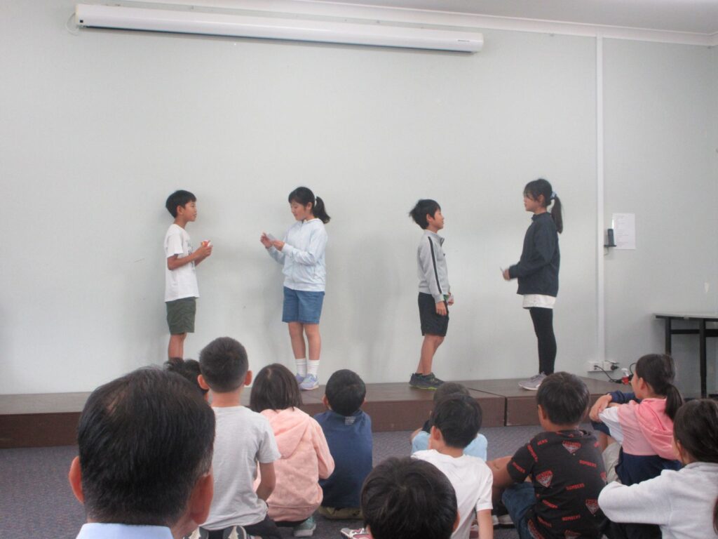 今年度、最後の小学部集会はG4が担当し、ハーモニーデーについて伝えました。ハーモニーデーは、1999年から毎年3月21日に祝われているそれぞれの文化について学ぼうという日です。オーストラリアにはいろいろなバックグラウンドの人たちが暮らしているため、お互いの文化を尊重する目的で設定された日だそうです。G4は、今年一年間を通して、世界の国のあいさつや文化に親しんできたこともあり、G4にぴったりな集会となりました。まずはハーモニーデーについて説明し、次に各国のあいさつを紹介しました。