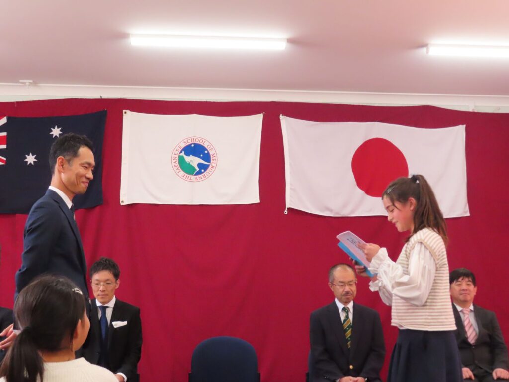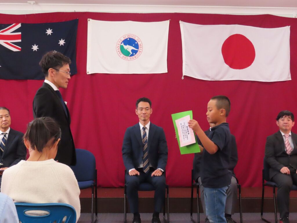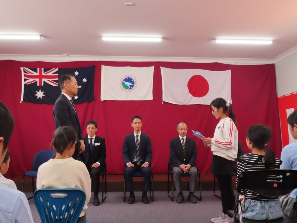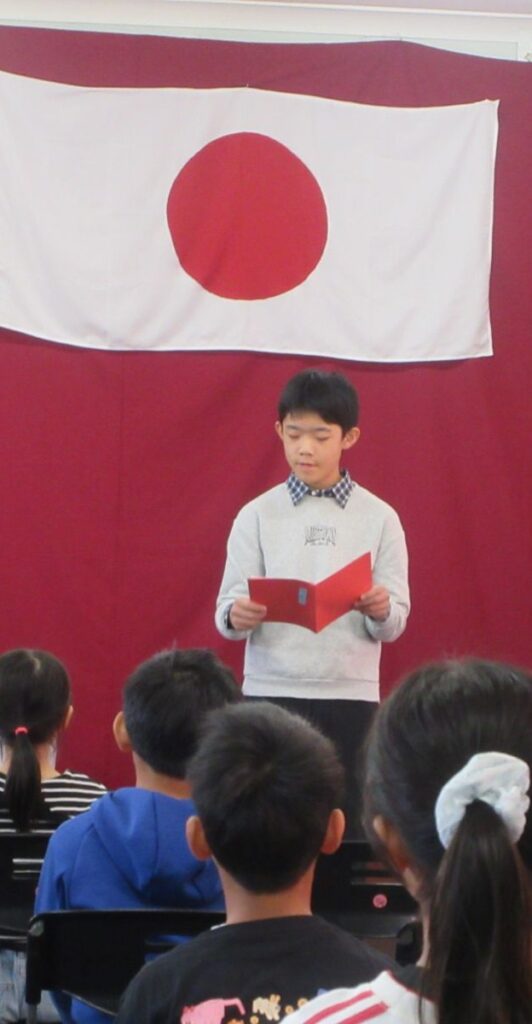 最後は離任式が行われました。今年度末には5人の先生方が帰国されます。お世話になった子供たちから思い出や感謝を伝える言葉が送られ、帰国教員一人一人からも子供たちの心に沁みる熱いメッセージが伝えられました。
