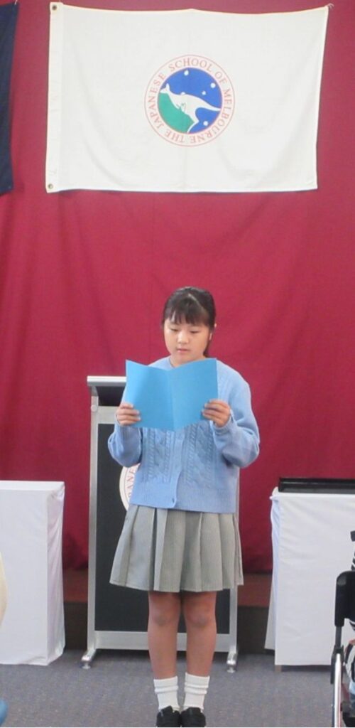 今日でメル校を去る子供たちもいます。日本に帰ってもメル校での経験を生かして、頑張ってくださいね。日本人学校は出会いと別れの繰り返しですが、ここで生まれた絆は一生の宝物です。メル校に関わってくださった全ての方々の幸せを心から願っています。一年間どうもありがとうございました。