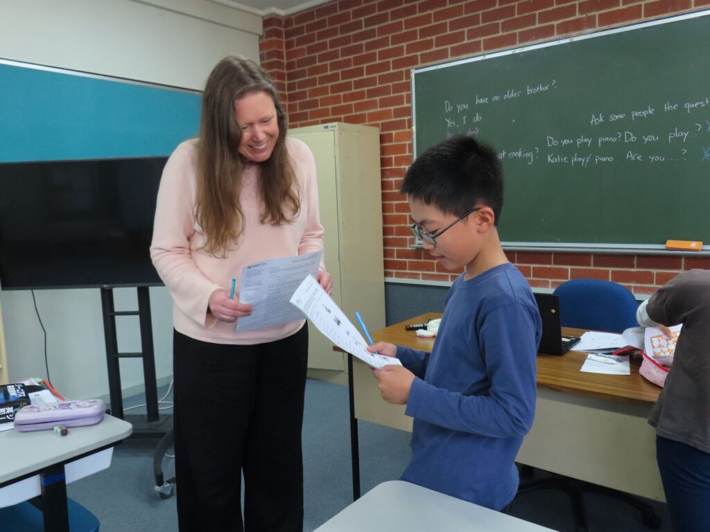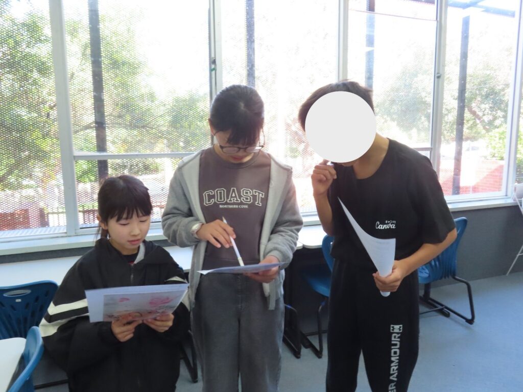 一つのクラスでは、学習シートに書かれた文章、例えば「3か国語を話すことができる」「毎週運動をしている」などに当てはまる人を、予測してインタビューをしながら探すコミュニケーション活動でした。もちろん英語で!「え?!そんな特技があったの?」「やっぱりそうだと思ったよ」などと、お互いのことを改めて理解し合えるとても良い機会となり、自然と笑みがこぼれていました。