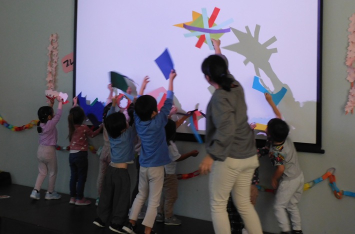 本校プレップの先生と子供たちが、わいわいと賑やかに活動を行っています。