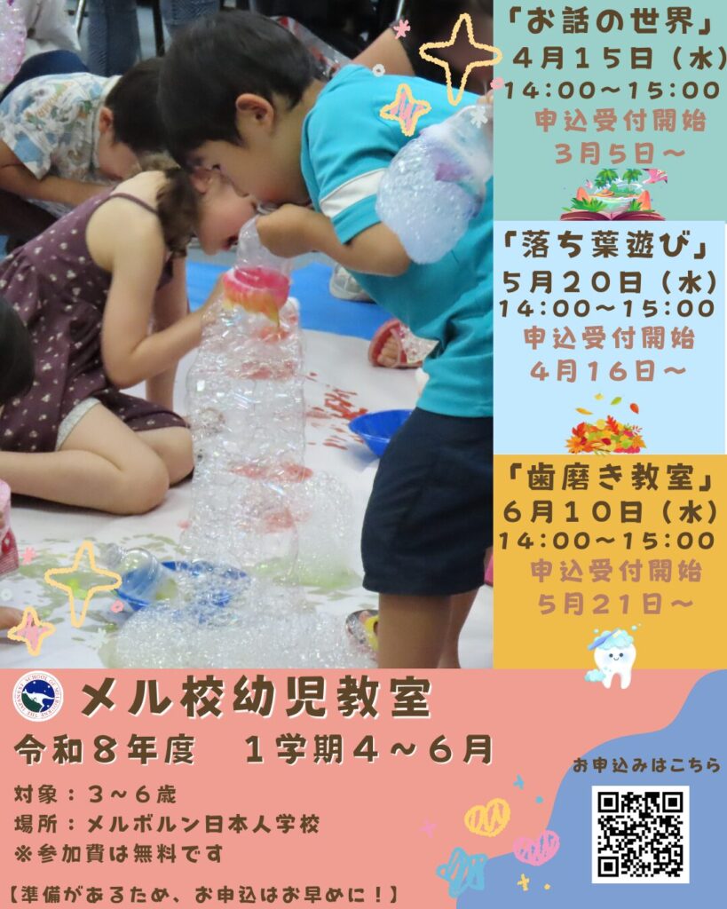 メルボルン日本人学校では、毎月1回、幼児教室を開催しています。